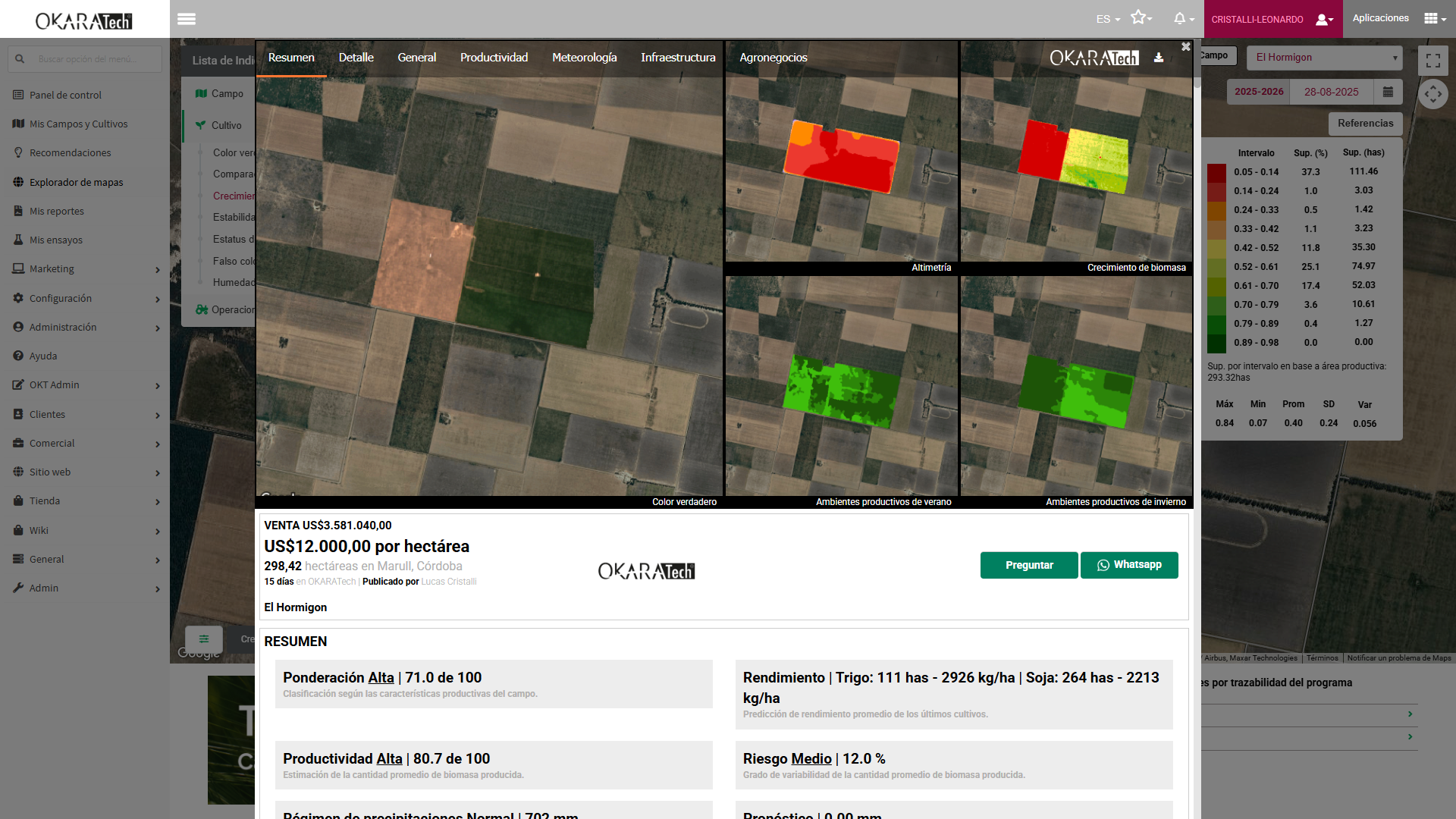Te ayudamos a conocer la productividad y el riesgo de un campo. Accede al soporte informático SaaS para racionalizar la evaluación y gestión de tierras agrícolas para conectar con tu mercado objetivo.